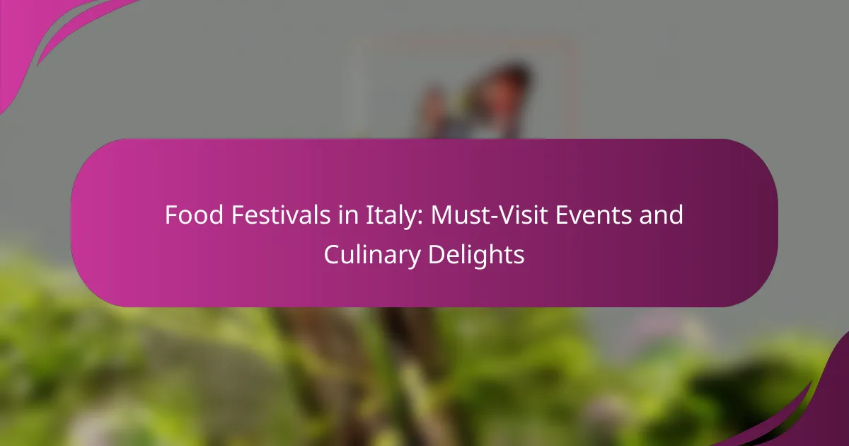 Italy is home to an array of vibrant food festivals that highlight its rich culinary heritage and regional flavors. Throughout the year, these events celebrate local ingredients and traditional recipes, providing food lovers with unforgettable experiences. Each season brings unique culinary delights, making every festival a delicious journey through Italy’s diverse gastronomic landscape.