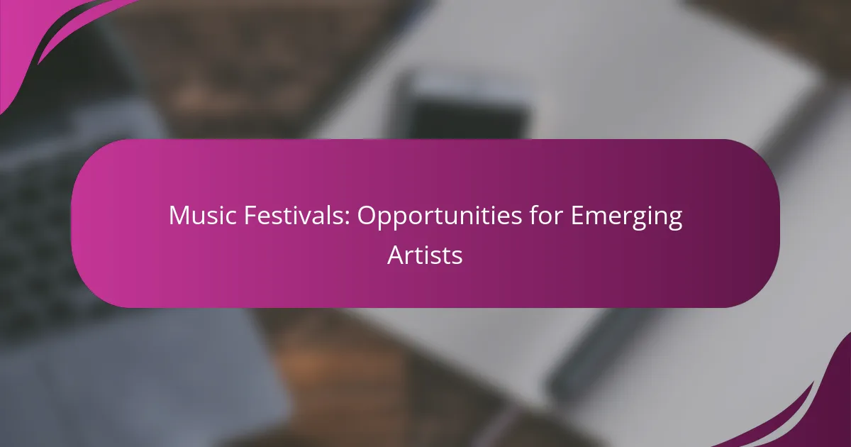 Music festivals present a unique opportunity for emerging artists to elevate their careers by gaining visibility, making industry connections, and honing their performance skills. Events like South by Southwest (SXSW) and Coachella not only showcase new talent but also provide invaluable networking opportunities that can lead to future success. By navigating the booking process strategically and promoting themselves effectively, these artists can secure their place on stage and reach diverse audiences.